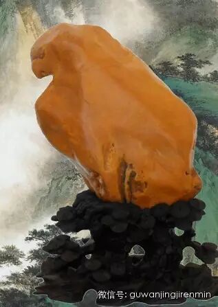 《天然三彩玉达摩图》:高48cm重29KG,三彩玉是在新疆北疆克拉玛依乌尔禾魔鬼城戈壁滩上历经亿万年形成的,当地人俗称“戈壁玉” 。新疆戈壁彩玉的硬度达6.5…7,此件天然三彩玉,石体莹澈润滑,石表油脂光泽,色彩丰富,妙趣天成!石面呈现《达摩祖师图》,只见达摩祖师神态自然,额头微微上扬,高高的鼻梁下胡须随风飞扬,身披金灿灿的木棉袈裟,手作合什,前有云山深林茂密,群峰叠翠,旁有清溪流泉,飞瀑千丈,此形此态犹如行至高山,发现修行之宝地。让人不得不感叹这大自然鬼斧神工之作的精妙。此件奇石经多位专家鉴定评估评价甚高,实为罕见!具有非常高的投资及收藏价值!估价:8600万!