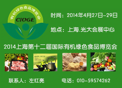 From:左红亮132 6113 6733 2014第十二届(上海)国际有机食品和绿色食品博览会 12th China(shanghai)InternationalOrganic and Green Food Expo,2014 时间:2014年4月27日-29日 地点:中国·上海光大会展中心 www.ujfair.cn file:///C:/DOCUME~1/ADMINI~1/LOCALS~1/Temp/msohtml1/01/clip_image001.gif邀请函 批准单位 中华人民共和国商务部 主办单位 中国对外贸易经济合作企业协会 中国国际贸易促进联合会 亚洲有机产品发展中心 协办单位 全国绿色产业促进工作委员会 德国CERES(上海)认证有限公司 辽宁方园有机食品认证有限公司 支持单位 北京爱科赛尔认证中心有限公司 组织单位 北京海名汇博会展有限公司 北京环球智展会展服务有限公司 顶级平台 中国国际有机食品和绿色食品博览会(简称:CIOGE),历经十年卓越发展,现成为亚洲地区有机绿色食品行业规模最大、最具影响力的行业盛会,展会每年两届分别在北京、上海举办,至今已成功举办十一届,它涵盖了全球范围系列的有机绿色食品,是有机绿色食品行业精英同仁每年必聚的交流盛会,顺应产品市场需求,致力打造亚洲最佳有机食品和绿色食品一站式采购和技术交流平台,共同助推引领有机绿色食品行业的快速发展。 我们已经做到的:上届展会数据:展会总面积25000平方米、来自国内外800余家企业展示最新高端产品,汇集国内有机食品行业品牌厂商亮相展会,北大荒集团、多利农业、响水贡米、太太乐、星布斯、故乡农场、想真有机、金源农业、康顺达、吉林展团、黑龙江展团、国家林业局展团等国内外名品悉数参加,据统计、共吸引了69362名业内买家入场参观,其中VIP买家18325家,更专业、更具购买力的专业买家来展会寻找新的产品。