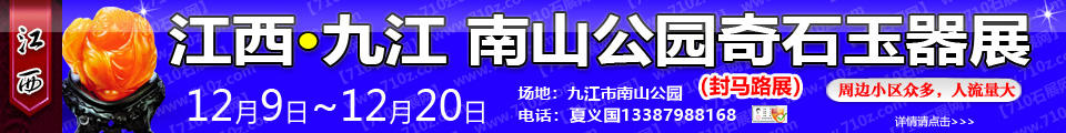 →联系我时:请一定说明是在【710中国石展网】看到的信息~谢谢! 提示:请在任何浏览器顶部地址栏输入本站网址:710z.com 即可直达本站 2025九江市南山公园奇石玉器展 邀请函 (同期举办:美食节,商品展,车展大型活动)